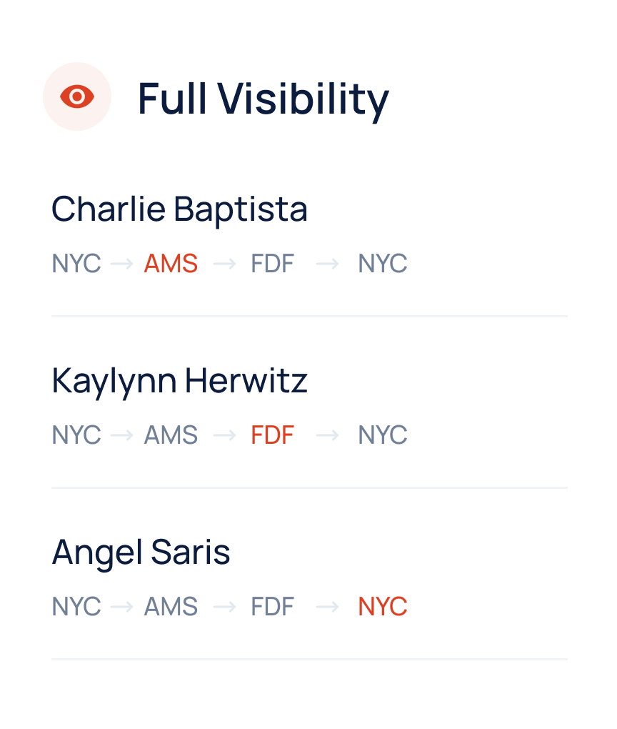 Full visibility into any and all travel costs in real-time. After each trip, we create one simple invoice that collects all costs. No more manually tracking down invoices.